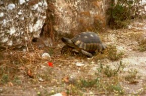 Als erstes ist uns diese nette Schildkröte über den Weg gelaufen, sie wollte aber nicht einkaufen auf der Agorá sondern hat sich am Mohn gütlich getan :-) |