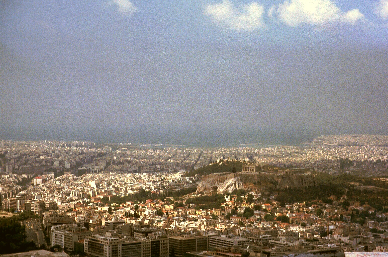Den schönsten Ausblick hatten wir am Freilichttheater von Piräus, nett war, dass hinter uns etliche Autos standen mit hauptsächlich Päärchen drin die gegessen und getrunken haben und wir haben nichts abbekommen ;-) Schade, dass wir nicht am Abend dort waren *g Auf dem Bild links im Hintergrund die Akropolis und der Likabettós, mal anklicken zum besser sehen. |
