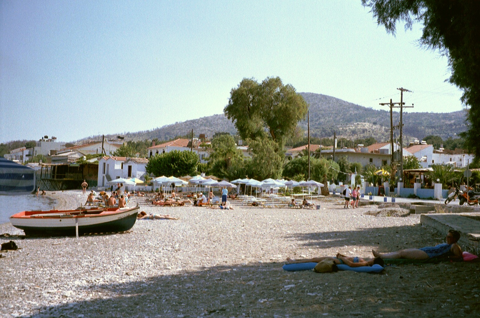 Montag, unser letzer Tag auf Samos. Leider habe ich den Fotoapparat im Studio vergessen :-( Wir haben eine wunderschöne Fahrt an der Südküste entlang gemacht. Erst durch die verbrannten Wälder, zum Glück erholt sich die Natur doch ein wenig, dann von Spatharaioi aus eine Strasse an die Küste runter. Nach einer teilweise anstrengenden Fahrtlandetesn wir in einem kleinen Dorf, Kirgianni, das eine reine Feriensiedlung für Athener und Samioten ist, fast wie ausgestorben und leider keine Taverne oder Kafenion. Auch das Nachbardorf besuchten wir noch. Landschaftlich war sowohl die Fahrt, als auch die Küste wunderschön. Wieder oben in Spatharaioi machten wir dann eine preiswerte Rast in einer Snackbar direkt an der Strasse, der Frappee für 1,10.- eine Souvlaki Pitta für 1.-€! Weiter ging dann die Fahrt über Pyrgos nach Koumaradaioi zurück. Auf dieser Strecke ist im Winter ein Stück Strasse abgerutscht als der große Regen war.