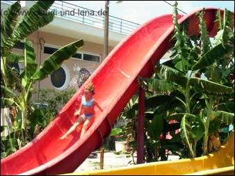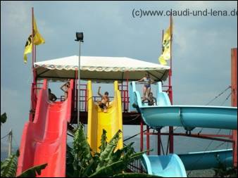 Samstag hatten wir den drei Weibsen versprochen, dass wir mit Ihnen ins Waterland gehen und sie rutschen dürfen. Für dreimal 8.- Euro Eintritt hatten wir einen ereignisreichen Nachmittag :-( Michael machte derweil einen Ausflug mit Romanos dem Schäferhund. Ganz harmlos sehen die Rutschen aus. Aber gleich die erste Rutschpartie hatte es in sich..... |