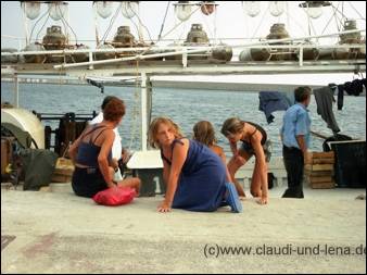 Am Abend waren Lena und ich dann mit Romanos alleine auf dem Berg. Aber bewacht von dem Hund hatten wir keine Bedenken :-) Gegen halb vier in der Nacht kamen dann die anderen Vier heim. Wir haben sie kaum gehört. |
