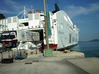 Nachdem dann die Poolbar aufmachte holte ich zwei Kaffee (a´ 2.-) und brachte Thommy einen in die Kabine und schmiss die Beiden aus den Kojen. Gegen halb 9 legten wir dann in Igoumenitsa an. ENDLICH wieder in Griechenland ! |